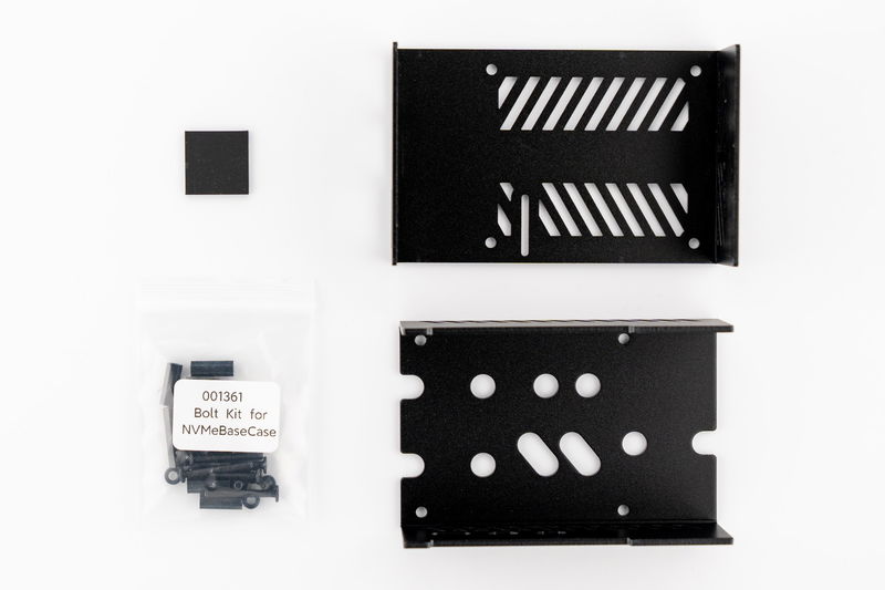 Put the Base inside the case, so that the four mounting holes line up. We'll be installing a standard NVMe Base, but you can follow exactly the same steps if you have a Duo.