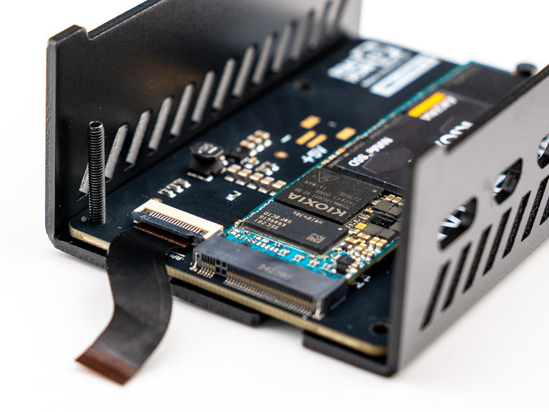 Before you do anything with the case, prep your NVMe Base / NVMe Base Duo by installing the drive/s and plugging the PCIe ribbon cable in at the Base end, as these steps will be tricky to do later.