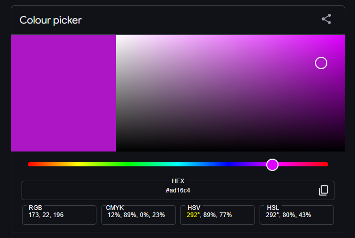 You can change the colours by altering the value of the hue variable. This is a value between 0 and 360°, mapped to a value between 0.0 and 1.0. So find your desired hue on a HSV (Hue, Saturation, Value) colour picker, and then divide it by 360 to provide you with a value between 0.0 and 1.0. This fetching magenta hue was 0.81.