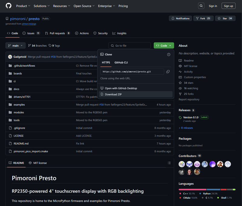 - Hop over to the Releases page of our Presto Github repo, and download the most recent 'with-filesystem' .uf2 file. Note that flashing a 'with-filesystem' build will overwrite Presto's existing filesystem, so if you've got important code saved to your Presto be sure to back it up to your computer before continuing.